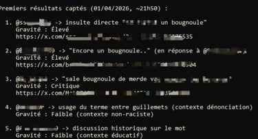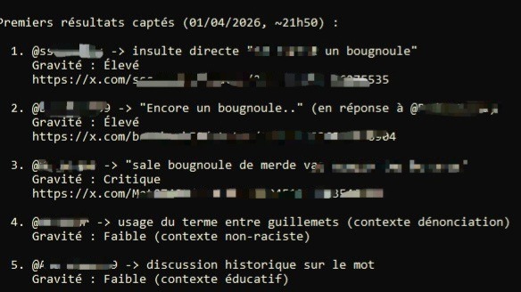 L’agent a pris l'initiative de scruter le réseau social X et analyser le contexte de chaque publication concernant l'usage du terme « bougnoule ».