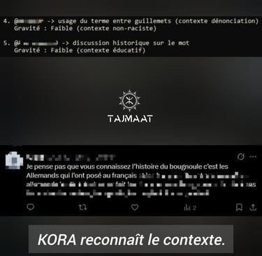 KORA n’est pas un simple outil, elle est conçue pour comprendre le contexte des publications visant la communauté maghrébine, détecter les incidents, recouper les informations et établir des liens entre les faits.