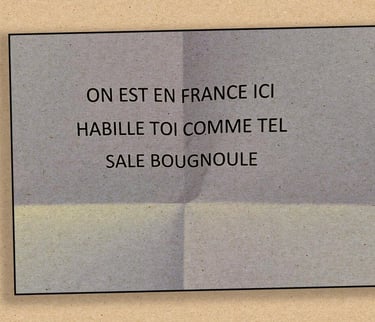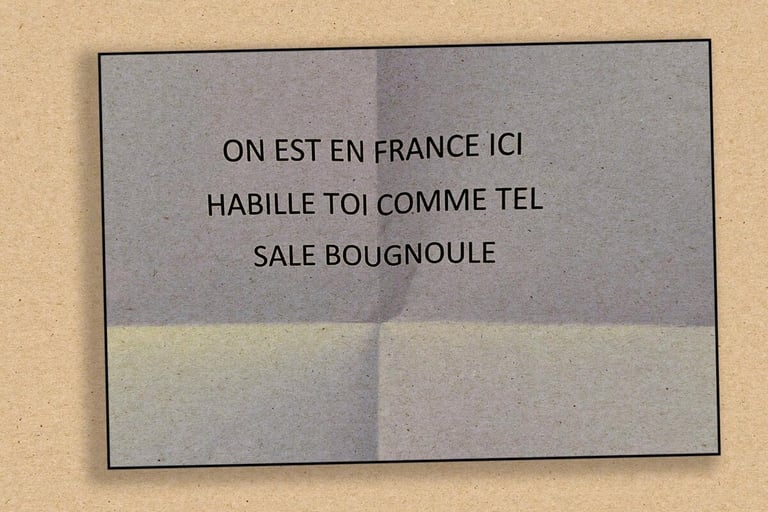 Le message, imprimé en majuscules, était explicite : « On est en France ici habille-toi comme tel sale bougnoule », en référence à une tenue traditionnelle algérienne portée la veille lors d’un mariage, en dehors de ses heures de service, rapporte Mediapart.