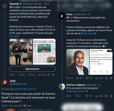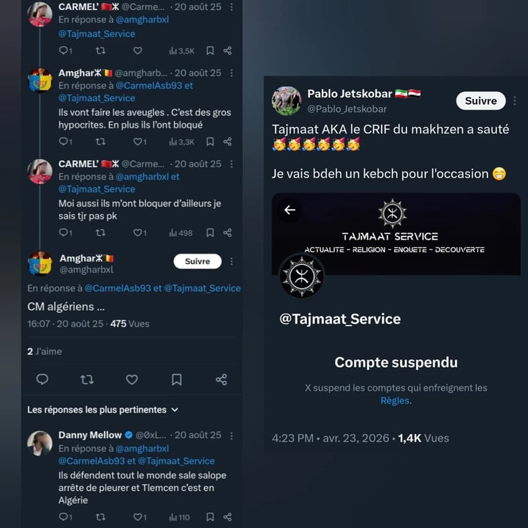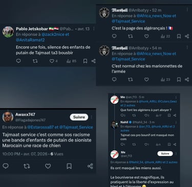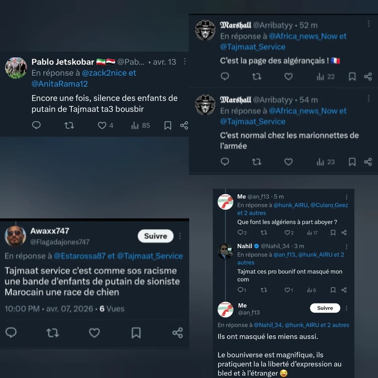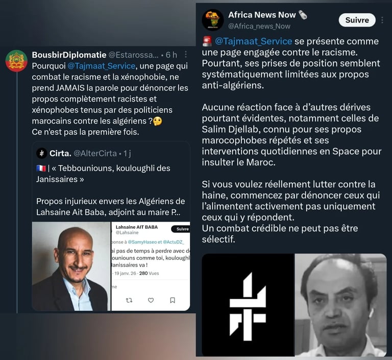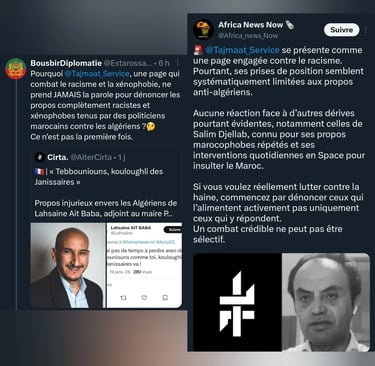 Leur objectif n'a jamais été de résoudre des affaires. Leur objectif a toujours été de nous entraîner dans leurs guerres intestines, de nous forcer à prendre position publiquement, de nous utiliser comme instrument au service de leur haine du voisin. Le fait d'être accusés simultanément d'être anti-algériens par les anti-marocains et anti-marocains par les anti-algériens ne démontre pas notre partialité, il en démontre l'exact contraire. Ces accusateurs, sans exception, tiennent des comptes dont le contenu est exclusivement orienté vers la haine de l'autre.