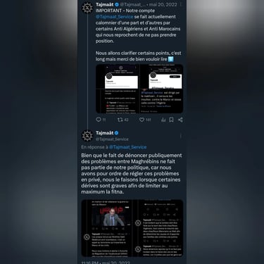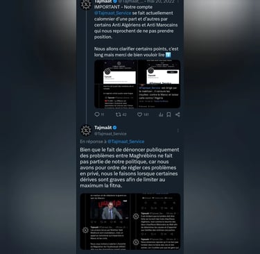 La raison est documentée : depuis l'affaire FRDETER en 2023, notre visibilité est devenue nationale. Nous sommes suivis par des milliers de Maghrébins, mais également par des milliers d'anti-maghrébins qui ne demandent qu'à saisir le moindre prétexte pour alimenter la division. Traiter publiquement les tensions internes aurait dispersé l'entraide maghrébine dans des polémiques stériles, réduit la portée de nos travaux sur le terrorisme, les agressions et l'entraide sociale, et fourni des munitions à ceux qui nous combattent depuis le premier jour.