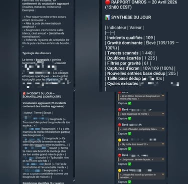 KORA dispose déjà de bots qui scrutent X en continu. Désormais, tout individu qui insulte les Maghrébins avec des termes racistes, d'un côté comme de l'autre, se retrouvera automatiquement dans nos bases de données, signalé aux plateformes et aux autorités compétentes. KORA détecte, rédige un rapport factuel, et agit.