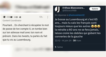 Depuis son lancement, la plateforme OMROS s'est engagée à surveiller et à combattre les discours de haine en ligne à l'encontre des communautés maghrébines. Ce que nous pensions être un signalement parmi tant d'autres s'est révélé être bien plus significatif : un internaute persistant dans ses insultes racistes, identifié sous le pseudonyme de "titicoco1169", s'est avéré être non seulement un chef de projet au sein de SOCOM au Luxembourg, mais également un élu local de la ville d'Errouville.